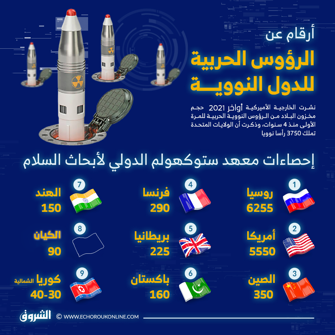 في هذا الإنفوجراف نستعرض أرقام الرؤوس الحربية للدول النووية