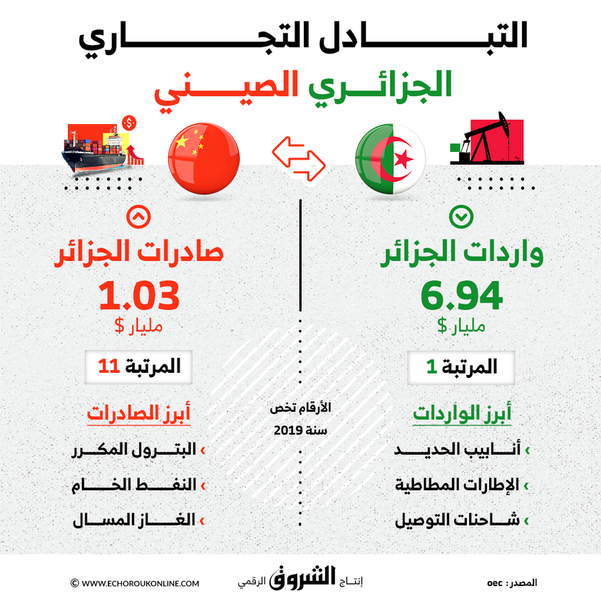 بمناسبة زيارة وزير الشؤون الخارجية والجالية الوطنية بالخارج رمطان لعمامرة إلى جمهورية الصين الشعبية.. نستعرض أرقام التبادل التجاري بين الجزائر والصين وأبرز الصادرات والواردات..