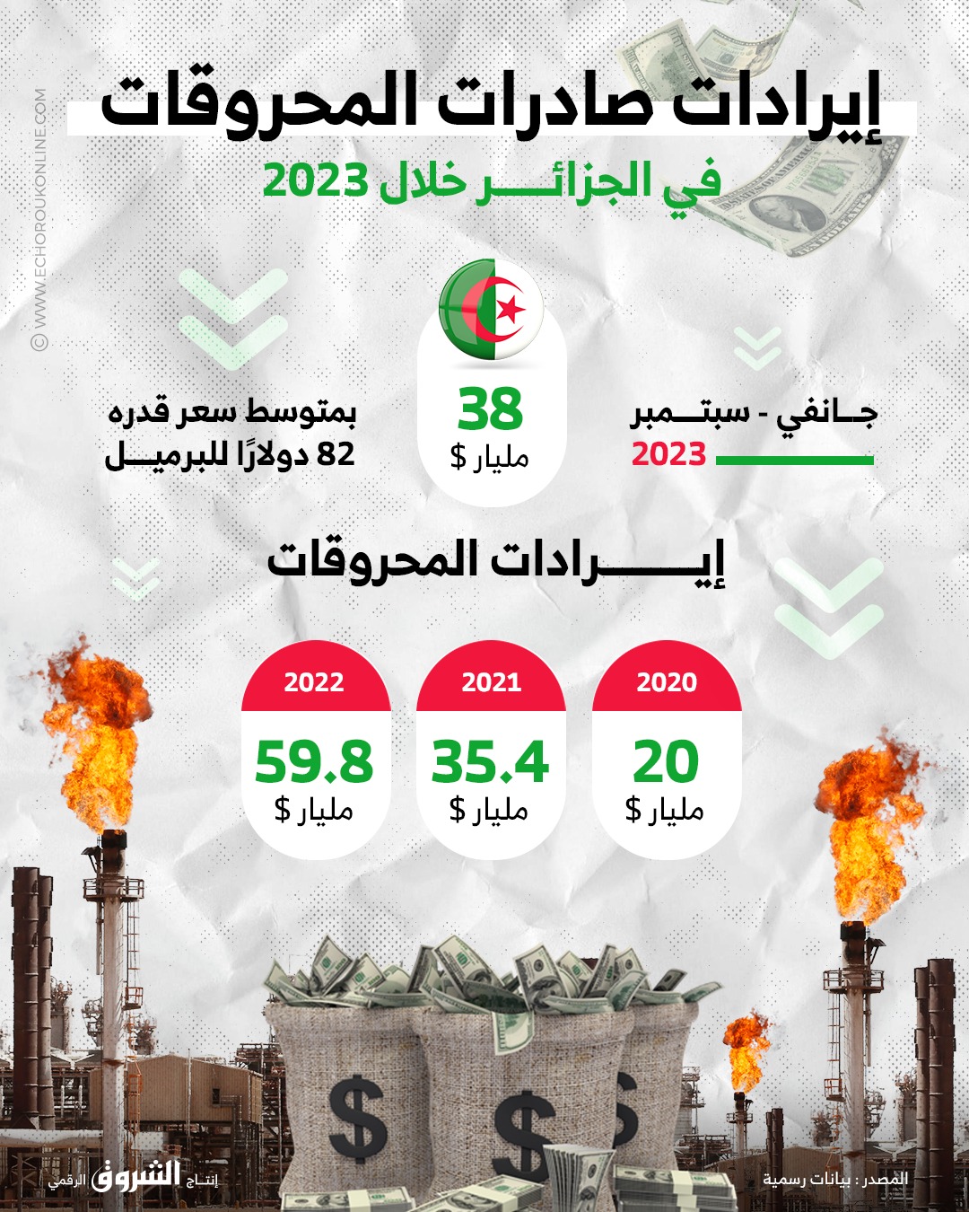 إيرادات صادرات المحروقات في الجزائر خلال 2023