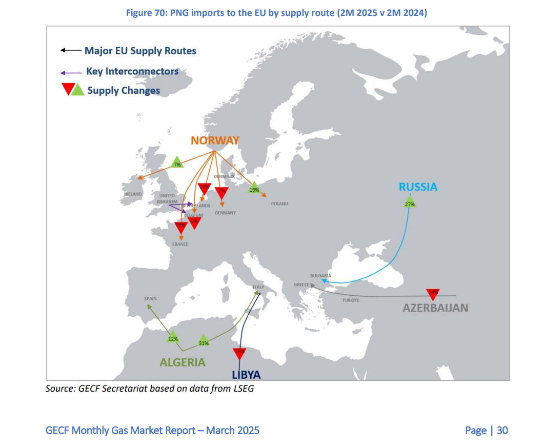 كشف تقرير صادر عن منتدى الدول المصدرة للغاز “GECF“، تسجيل ارتفاع كبير في واردات الاتحاد الأوروبي من الغاز الطبيعي والسائل “LNG” خلال شهر فيفري الماضي، بنسبة 21 من المائة.