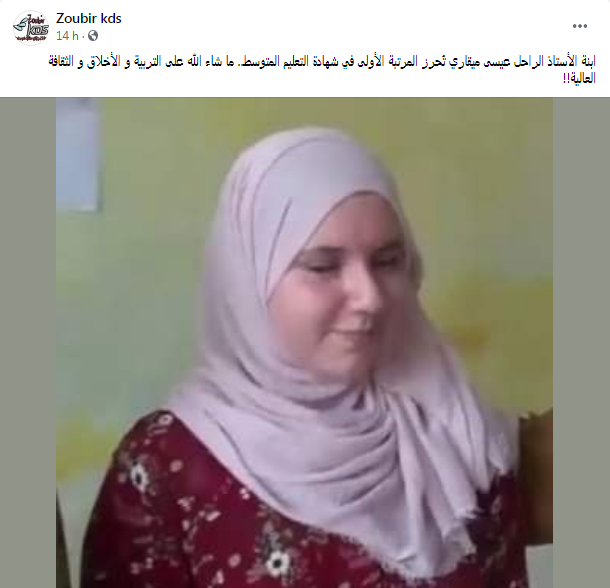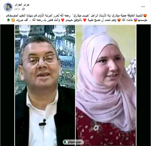 صنعت ابنة الدكتور عيسى ميقاري، الأحد، الحدث عبر مواقع التواصل الاجتماعي، بعد تداول خبر إحرازها المرتبة الأولى في شهادة التعليم المتوسط على مستوى مؤسستها.