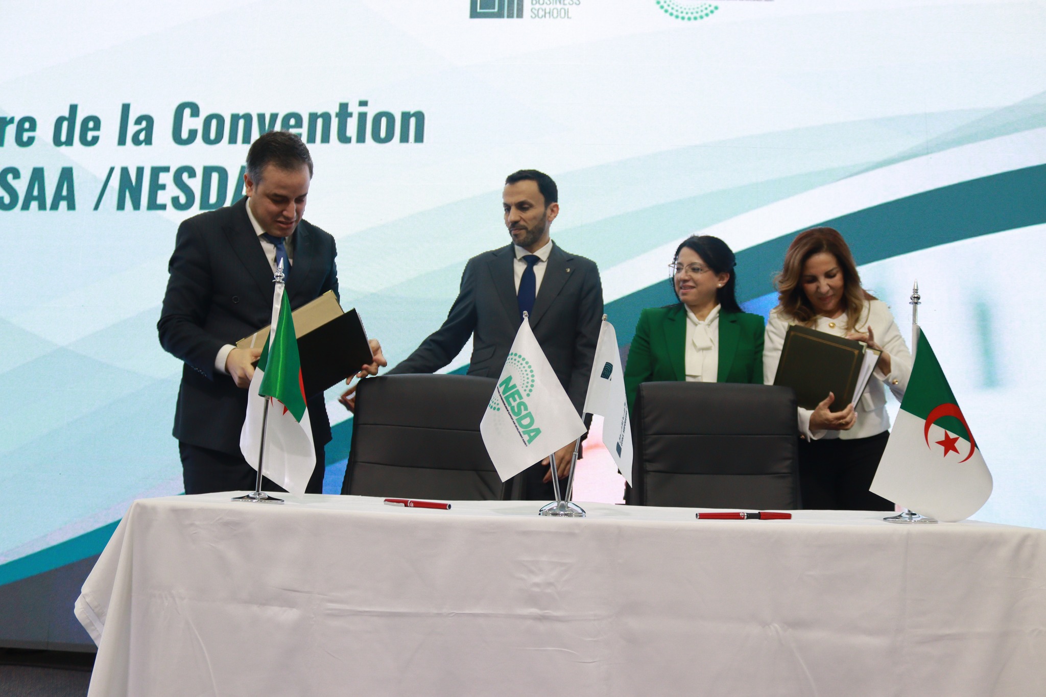 أما الاتفاقية الثانية الموقعة مع مسرّع الشركات الناشئة “Algeria Venture”، فتهدف إلى تطوير الابتكار وهياكل دعم المؤسسات الناشئة والمؤسسات المصغرة، من خلال تصميم وتنفيذ برنامج “Executive ESAAVENTURE Program”، المخصص لتطوير مهارات ريادة الأعمال وتعزيز قدرات المؤسسات ضمن المنظومات البيئية للطرفين.