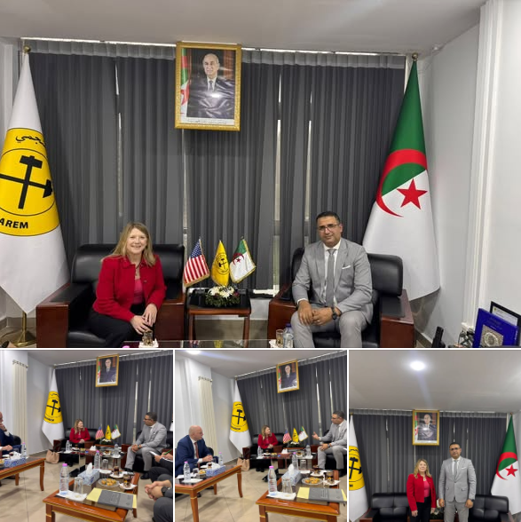 اتفق المدير العام لمجمع سونارم، رضا بلحاج، و ديبرا ك. مارتن، المستشارة التجارية بمصلحة التجارة التابعة للسفارة الأمريكية بالجزائر، على تعزيز التعاون والاستثمار في القطاع المنجمي، خلال لقاء عُقد بمقر المجمع.