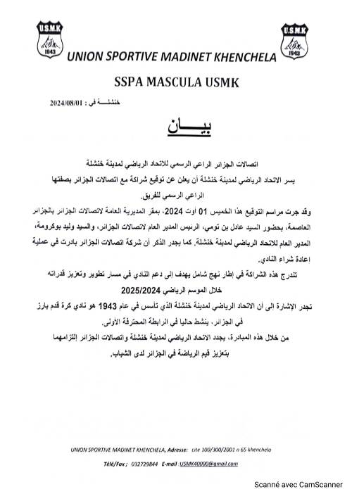 اتّصالات الجزائر الرّاعي الرّسمي لاتّحاد خنشلة