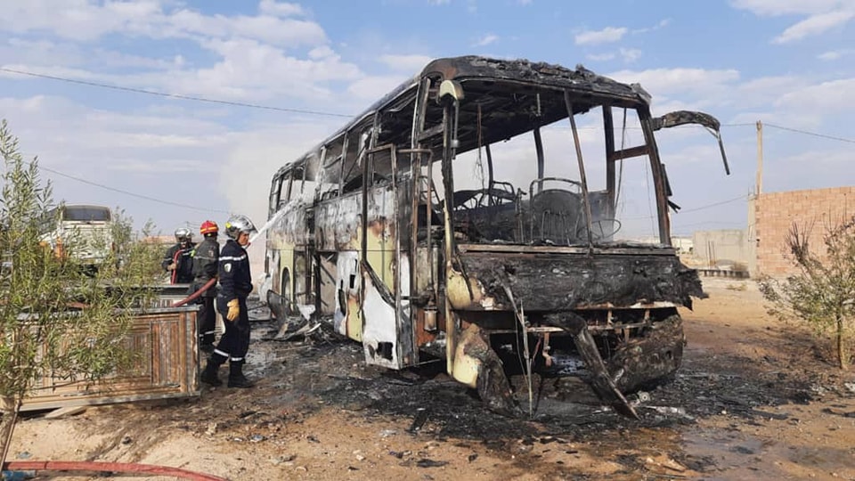 احتراق حافلة لنقل المسافرين بالمسيلة