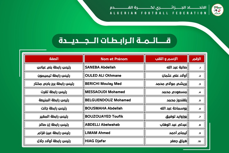 في إطار تجديد المكاتب التنفيذية لرابطات كرة القدم للعهدة الأولمبية 2025-2029، وحرصا على مواكبة التقسيم الإداري الأخير للبلاد، قرر الاتحاد الجزائري لكرة القدم استحداث عشر رابطات ولائية جديدة، بهدف تعزيز هياكله الإدارية والتنظيمية.