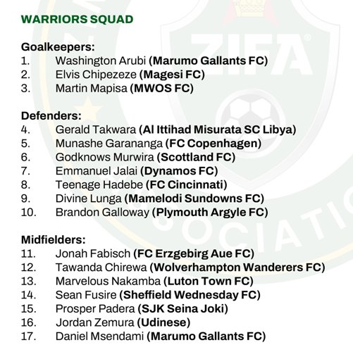 استدعاء 24 لاعبا زيمبابويا لِمُواجهة الجزائر