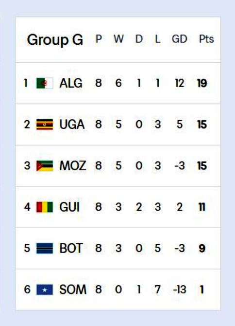 وقبل مواجهة “الخضر”، تلعب أوغندا بعيدا عن الدّيار مرّة أُخرى، لكن ضدّ منتخب بوتسوانا في الـ 9 من أكتوبر المقبل، ضمن إطار الجولة التاسعة من تصفيات المونديال.