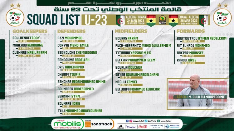 ويحتضن ملعب “19 ماي 1956” بِعنابة أطوار مواجهة الذّهاب، في الـ 24 من مارس الحالي. وتُجرى مباراة العودة بِغانا في الـ 28 من الشهر ذاته.