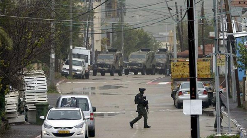 عنصر قوات خاصة وآليات لشرطة الاحتلال خلال عملية البحث عن نشأت ملحم في عرعرة - 8 جانفي 2016