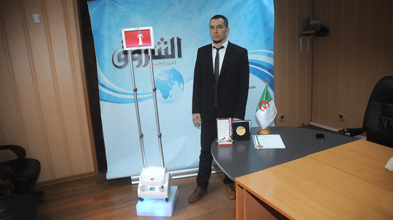 تمكنت مجموعة من الشباب من تجسيد أول روبوت جزائري ومنح له اسم “اف”، وهو ما يعبر عن العمود الفقري بالنسبة للروبوت الكامل المقسم جسده إلى قسمين، فالعلوي منه والذي يحمل رأسا أسود يعبر عن الشخص الإفريقي، ولأن الجزائر بوابة إفريقيا حاول المخترعون مزج شكله الذي يعبر عن القارة كهدية للرئيس عبد العزيز بوتفليقة لما حققه من سلم واستقرار للوطن وللراحل الأمريكي جون كنيدي تكريما لمواقفه الداعمة لحرية واستقلال الجزائر. وإن كان هذا الإنجاز الأكثر تحديا لهؤلاء الشباب نظير الخدمات المعتبرة التي يمكن أن يقوم بها عن طريق التحكم فيه عن بعد، فيمكن أن يكون بديلا عن الممرض في المستشفيات كما يستخدم في المعارض، في حين ينوب عن الشخص المضياف الذي ينتظر صديقا له بالمطار حتى إن مجموعة منهم يمكن أن تجري مقابلة في كرة القدم بين فريقين دون حضور اللاعبين الذين يمكن أن يتحكموا فيه من بيوتهم عن طريق أجهزة ولوحات الكمبيوتر، لتختتم المقابلة بروح رياضية يمكن أن تكون قدوة بملاعبنا مستقبلا.