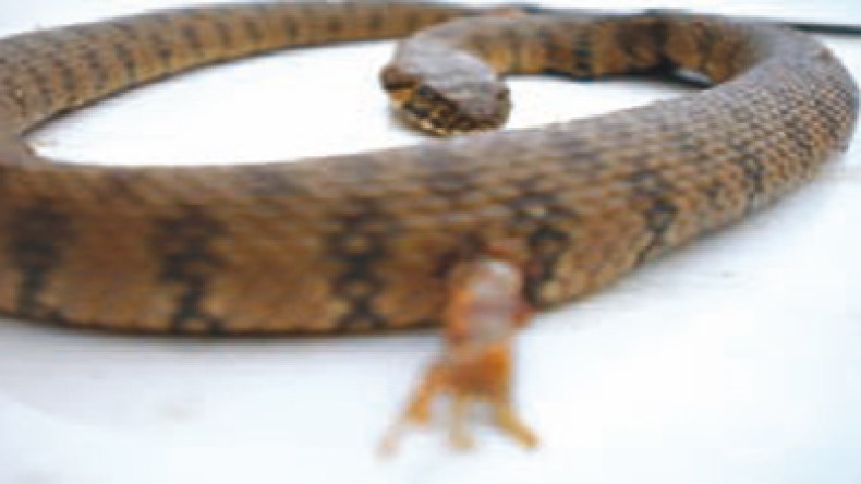 Couleuvre عادية غير سامه. قتلت بعد أكلها (زرزومية )..مما تسبب إصابة أخرجت رجل الفريسه