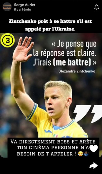 ردّ اللاعب الدولي الإيفواري السّابق سيرج أوريي ساخرا على الأوكراني أولكسندر زينتشنكو، بِخصوص الحرب.
