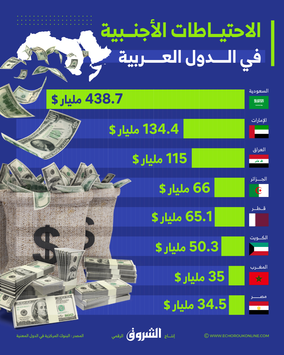 هذه هي قيمة الاحتياطات الأجنبية في الدول العربية: