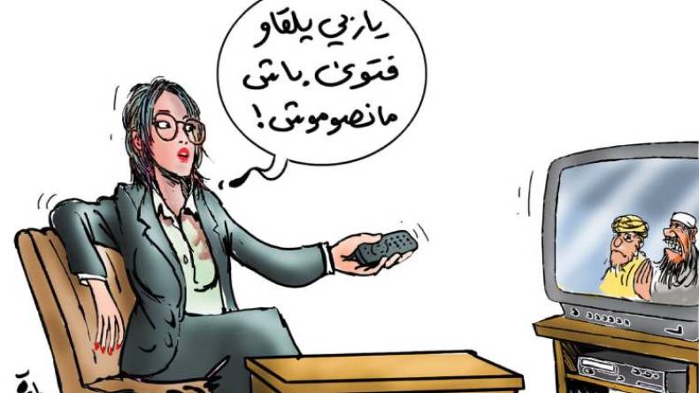 قنوات تلفزيونية برمتها، وأستوديوهات رمضانية ضخمة تخصص لهذا النوع من الحصص الدينية، أغلب المتفاعلين معها من السيدات، أصبحت تثير أزمات اجتماعية خطيرة، وجدلا واسعا في الأوساط الدينية بما تصدره من فتاوى، وكذلك بكم التناقضات والتباينات بين المفتين حول الموضوع الواحد، حيث يطرح شيخ ما يخالف به مشايخ آخرين، فتلجأ إلى فتواه فئة من السيدات، حسب ما يوافق مصلحتهن الشخصية، ما يؤدي في كثير من الأحيان إلى المساس بركن الصوم في شهر رمضان المعظم.. وفي هذا يقول أستاذ الشريعة الإسلامية، نصر الدين واضح: “بعض المشايخ والمفتين عبر القنوات التلفزيونية والإذاعية العربية باتوا يسعون إلى ما تسعى إليه برامج الفن، من شهرة وتفاعل وصيت، كل يفتي في الدين على هواه، مع تحريف المرجعيات، وهذا خطر كبير على الإسلام، خاصة أن غالبية النساء في مجتمعاتنا العربية السائرة نحو التفتح والعصرنة، بتن أقل ارتباطا بالدين واكتراثا بأحكامه الصحيحة..”.