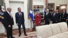 وتظهر الصور ترامب مبتسماً وهو يصافح لافروف، وقد وقف إلى جانبهما السفير الروسي في واشنطن سيرغي كيسلياك، خلال اجتماع، الأربعاء، في المكتب البيضوي.