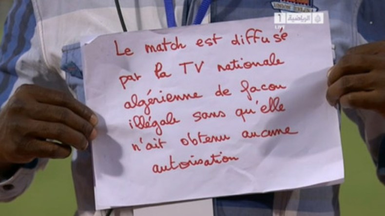 قام التلفزيون الجزائري بـعملية “قرصنة” ونقل اللقاء مباشرة بالرغم من عدم حصوله على حقوق البث من القناة القطرية، في سابقة تعد الأولى من نوعها في تاريخ التلفزيون، حيث قال الصحفي لخضر بريش، الذي أدار الأستديو التحليلي الخاص باللقاء في قناة الجزيرة الرياضية، بأن التلفزيون الجزائري نقل اللقاء رغم عدم امتلاكه الحق في ذلك، وهو الأمر الذي سيجعله مهددا بالمتابعة القضائية من طرف القناة القطرية، التي لا يبدو أنها مستعدة للسكوت عما حدث، وستطالب بالحصول على تعويضات مالية معتبرة، فيما قال الإعلامي الجزائري حفيظ دراجي، الذي علّق على المباراة، بأن هذا الأمر لن يمر بسلام، بينما رفع أحد البوركينابيين بعد نهاية اللقاء لافتة كتب عليها “التلفزيون الجزائري نقل مباراة بوركينافاسو والجزائر على المباشر بطريقة غير شرعية، رغم عدم حصوله على حقوق البث”.