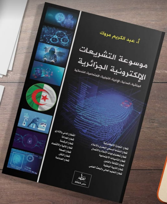 صادر عن “نقطة بوك” للنشر والتوزيع (باتنة) الجزائر، يشتمل على معظم التشريعات الإلكترونية الجزائرية في المجال الجنائي والمدني والإداري والتجاري والاجتماعي والخدماتي، وفي مختلف القطاعات لاسيما قطاع التجارة الإلكترونية وقطاع النشاط السمعي البصري والإعلام والرقمنة، وتكنولوجيات الإعلام والاتصال، قطاع الثقافة والفنون، وقطاع التربية الوطنية، وقطاع التعليم العالي والبحث العلمي، قطاع التأمينات الاجتماعية، قطاع الصحة والصناعة والنقل والمالية والاقتصاد وقطاع العدالة.