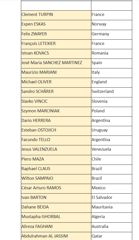 وتضم قائمة المرشحين لجائزة أفضل حكم في العالم لسنة 2025، أيضا، 24 حكما من القارات الخمسة، من بينهم الألماني فيليكس تسواير، البولندي شيمون مارشينياك، البرازيلي ويلتون سامبايو والموريتاني دحان بايدا.