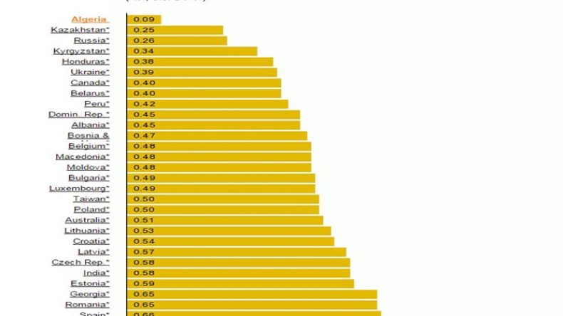 POUR COMPLETER LA COMPARAISON , IL FAUT EGALEMENT ETABLIR LE CLASSEMENT DES SALAIRES DES TRAVAILLEURS DE CES PAYS ET VOUS VERREZ L'ALGERIE CLASSE PARMI LES DERNIERS
