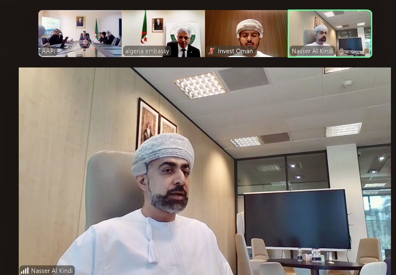 وترأس الاجتماع المدير العام للوكالة الجزائرية لترقية الاستثمار، عمر ركاش، والرئيس التنفيذي لصالة “استثمر في عُمان”، ناصر الكندي، بحضور سفير الجزائر لدى سلطنة عُمان، محمد علي بوغازي، وإطارات من الجانبين.
