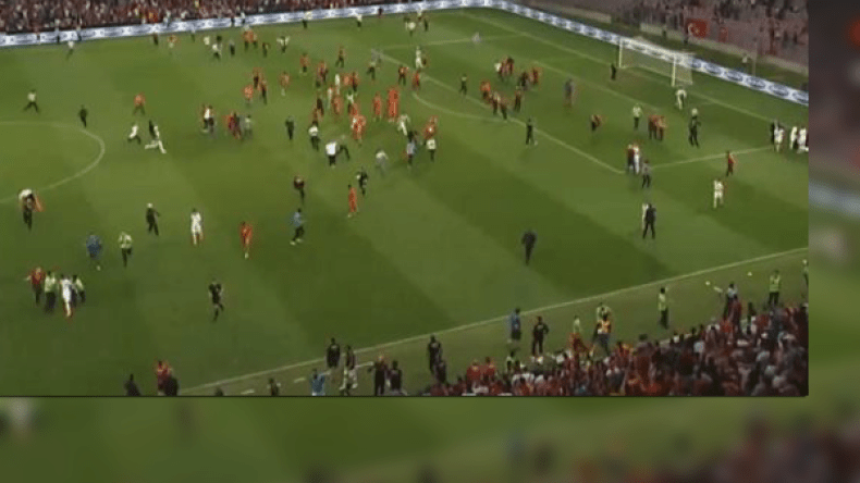 ومباشرة بعد تعديل منتخب تركيا النتيجة (2-2) في الدقيقة الـ 90، اجتاح الجمهور أرضية الميدان. قبل أن يتدخّل أعوان الملعب لِإجبار الأنصار على العودة إلى المدرجات. عِلما أن المواجهة انتهت بِنفس النتيجة المُشار إليها.