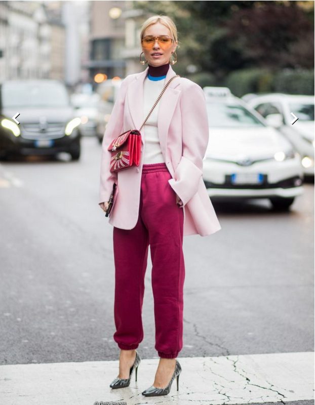 الطلة بالجوكينغ ممكن أن تشكل ستايلا خاصا إذا ارفقت بمعطف وحذاء بكعب عال وحقيبة صغيرة، مثلا اذا كان الجوكينغ من المخمل وبلون الفوشيا تصوري أن ترتدي معه معطفا ورديا فاتحا وحقيبة حمراء “إثنية” وبكعب عال، لا تتفاجئ هذا ممكن جدا للجريئات..