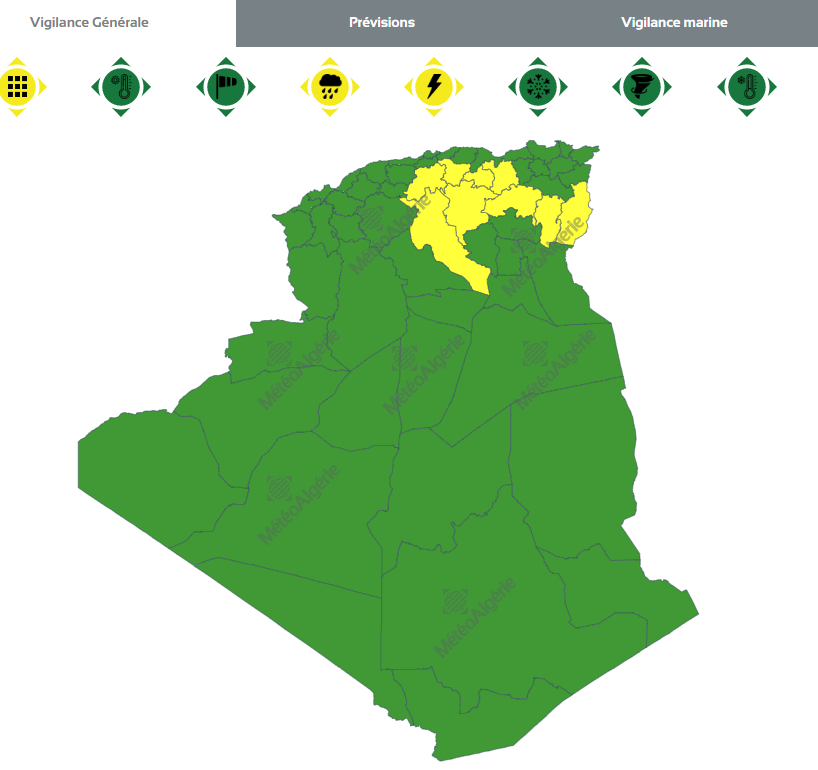 وأوضح الديوان الوطني للأرصاد الجوية أن صلاحية النشرية من الثالثة زوالا إلى غاية منتصف الليل.