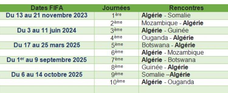 اتّضحت الرّؤية، الأربعاء، بِخصوص جدول مقابلات المنتخب الوطني الجزائري في تصفيات كأس العالم 2026.