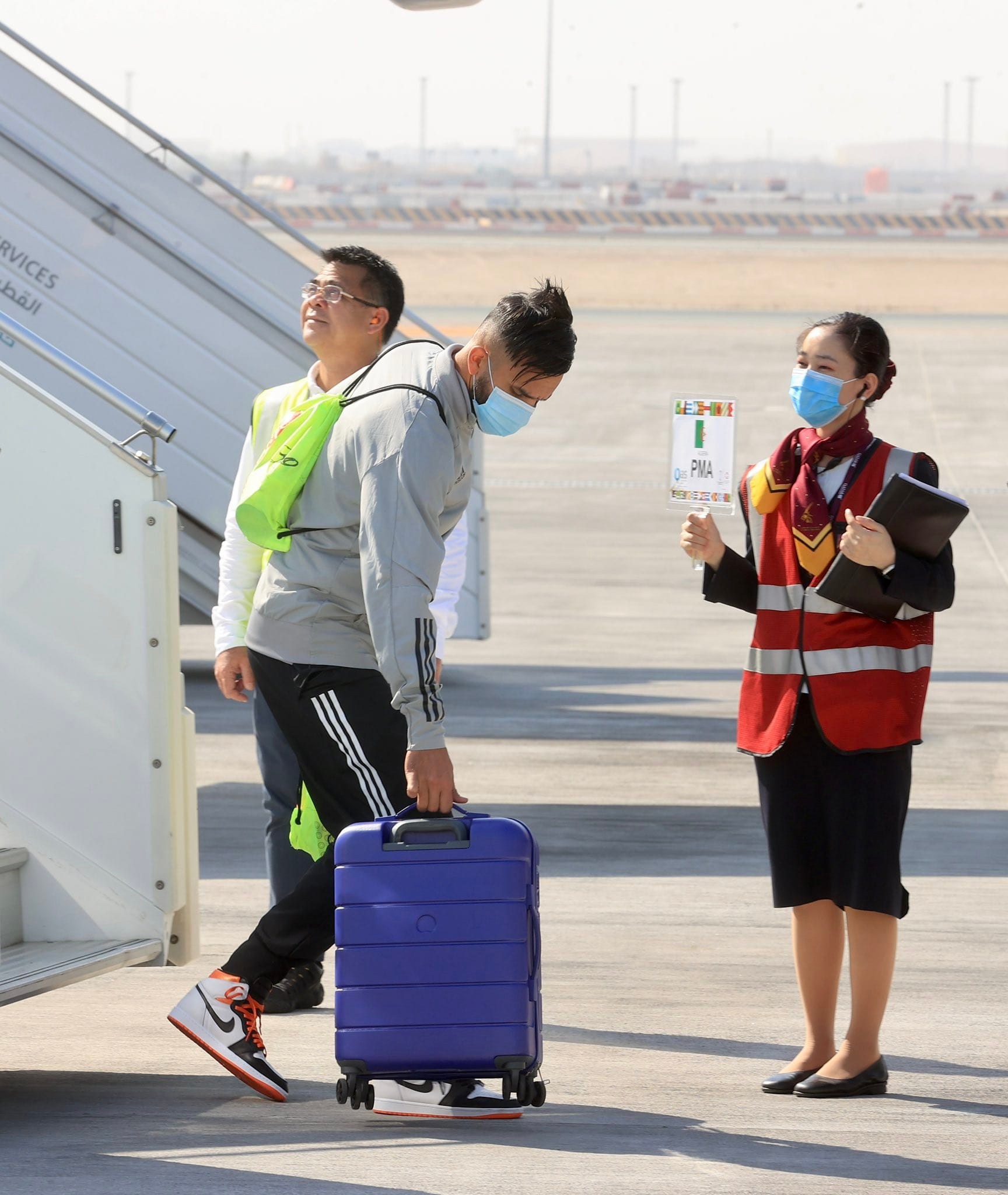 وتنقل اللاعبون المحليون فجر السبت من الجزائر، مرورا بتونس، أين التحق بهم اللاعبون الناشطون في البطولة التونسية، قبل مواصلة الرحلة عبر طائرة للخطوط الجوية الجزائرية نحو الدوحة القطرية.