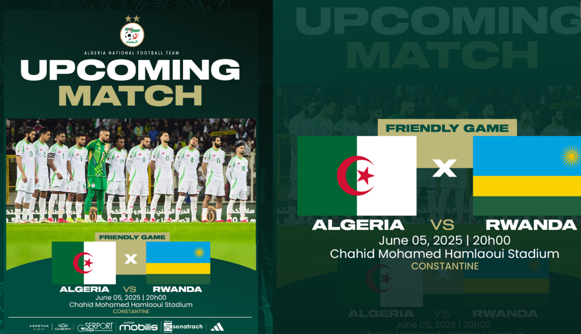 وسيواجه أشبال المدرب بيتكوفيتش منتخب رواندا، يوم 5 جوان، بملعب الشهيد حملاوي بقسنطينة، بداية من الساعة الثامنة ليلا.