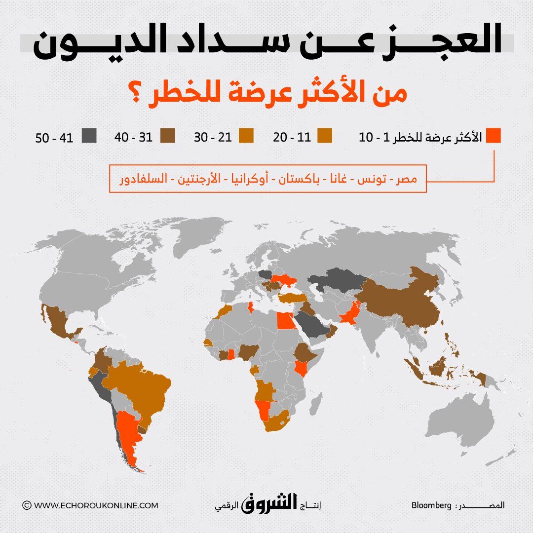 الدول الأكثر عرضة لخطر العجز عن سداد الديون