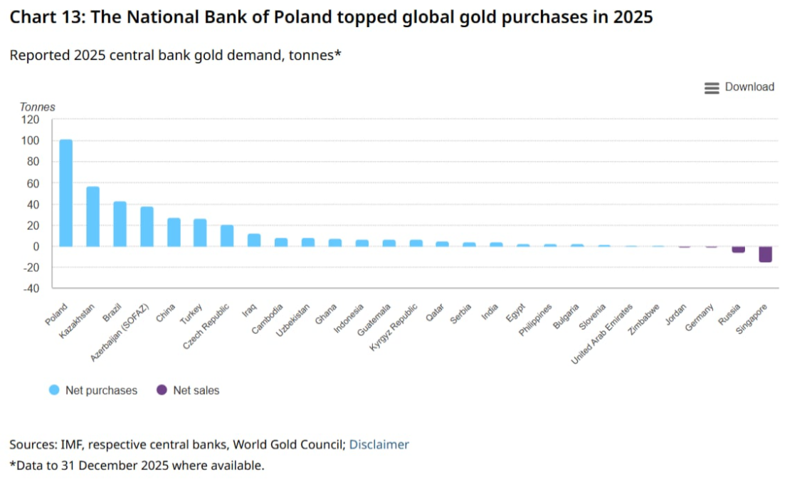 وحسب تقرير لمجلس الذهب العالمي، اطّلعت عليه “الشروق أونلاين”، تصدّر البنك المركزي البولندي قائمة المشترين خلال العام الماضي بكمية بلغت 102 طن، متبوعًا بـكازاخستان بـ 57 طنًا، ثم البرازيل بـ 43 طنًا، في حين بلغت مشتريات الصين وتركيا 27 طنًا لكل منهما، ما عزّز احتياطاتهما إلى 644 طنًا و2306 أطنان على التوالي.