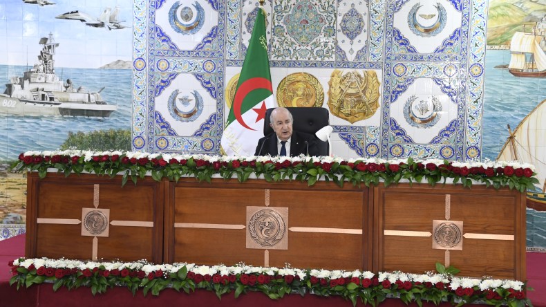 ووفقا لما أفادت به وزارة الدفاع، التقى الرئيس تبون بإطارات ومستخدمي الجيش الوطني الشعبي، أين ألقى خطابا بُث إلى جميع قيادات القوات، والنواحي العسكرية الست والوحدات الكبرى والمدارس العليا عبر كامل التراب الوطني عن طريق تقنية التخاطب عن بعد.