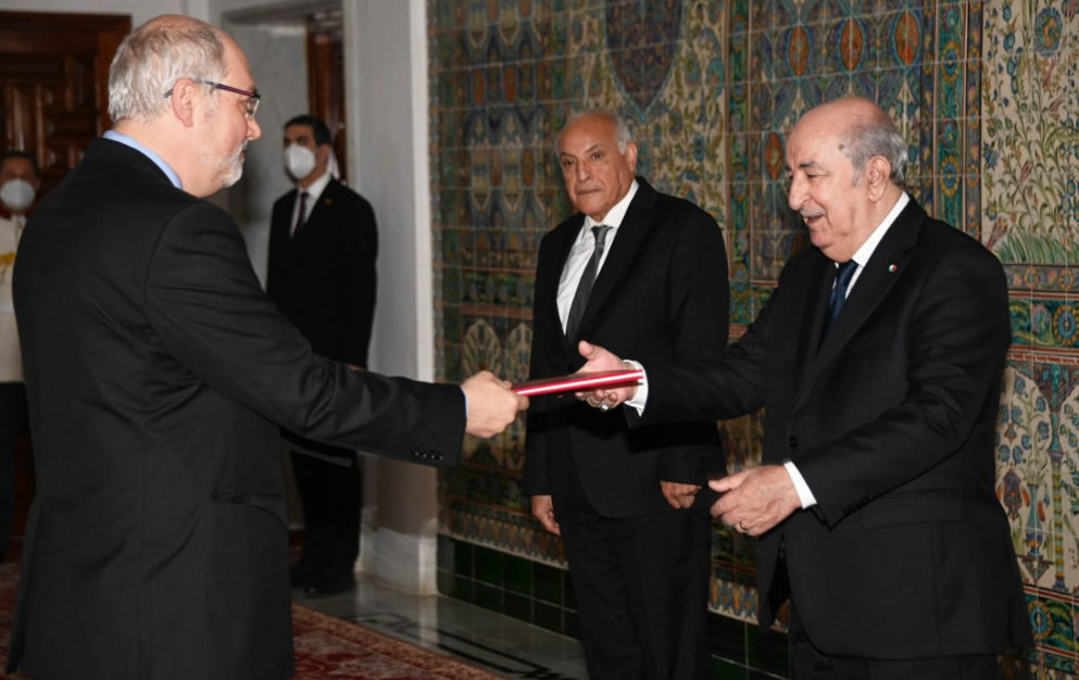 وجرت مراسم تسلّم أوراق الاعتماد بحضور وزير الشؤون الخارجية والجالية الوطنية بالخارج أحمد عطاف، ومدير ديوان رئاسة الجمهورية النذير العرباوي.