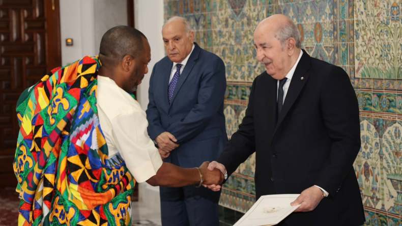 الرئيس تبون يتسلم أوراق اعتماد سفير غانا، 9 فيفري 2026.