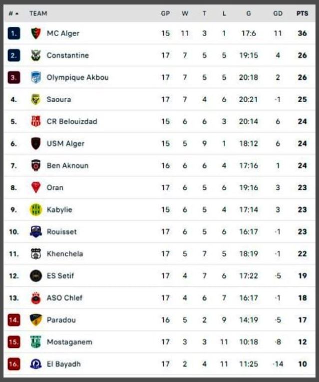 وتشكّلت لائحة الترتيب كالتالي: