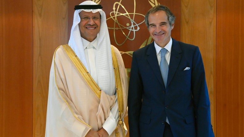 المدير العام للوكالة، رافائيل ماريانو غروسي، في لقاء مع وزير الطاقة السعودي، الأمير عبدالعزيز بن سلمان.
