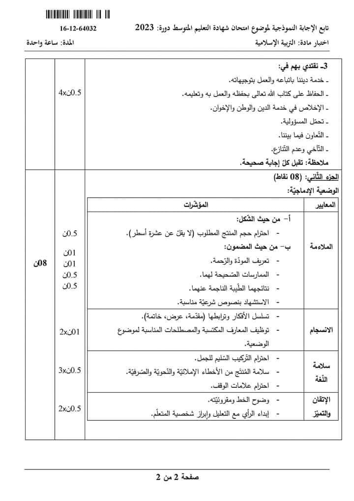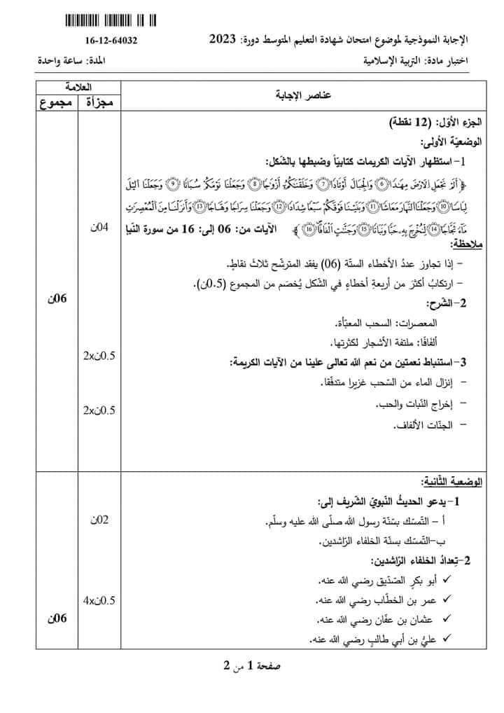 مادة التربية الإسلامية