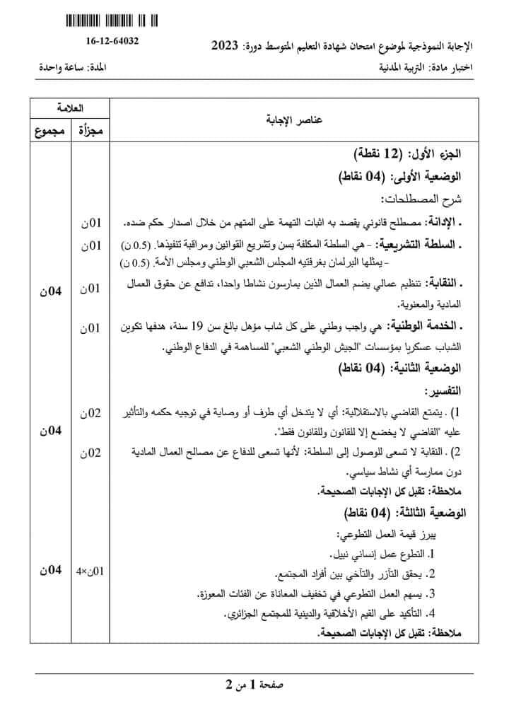 مادة التربية المدنية