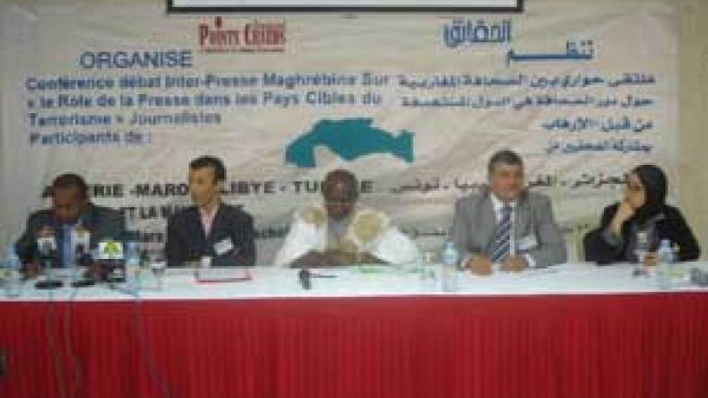 أجمع المشاركون في “الملتقى الحواري بين الصحافة المغاربية حول دور الصحافة في البلدان المستهدفة من طرف الإرهاب”، أن الإعلام بصفته سلطة رابعة تقع عليه مسؤولية كبيرة في نقل ومعالجة المعلومات ذات الصلة بقضايا الإرهاب، وبحث المشاركون ضوابط ممارسة هذه السلطة بعيدا عن الإثارة، خاصة عند تغطية العمليات الإرهابية، وألح المتدخلون من ممثلي مختلف وسائل الإعلام المحلية والدولية على ضرورة الإبتعاد عن الإثارة وممارسة الدعاية المجانية لجرائم تنظيم ما يسمى “الجماعة السلفية للدعوة والقتال” الذي حول تسميته إلى “القاعدة في بلاد المغرب الإسلامي” وتبنى الإعتداءات في موريتانيا، المغرب وتونس وعرضها بدون عمد كـ”بطولات”، وتم تشكيل لجنة متابعة في ختام الملتقى تضم ممثلي وسائل الإعلام رفعت تقريرا إلى الفيدرالية العالمية للصحفيين والمنظمة العربية للصحفيين لعقد ملتقى لتوسيع دائرة النقاش حول إشكالية الإعلام والإرهاب في العالم العربي خاصة، وإشراك جميع وسائل الإعلام المكتوبة والسمعية إضافة إلى الصحف الإلكترونية.