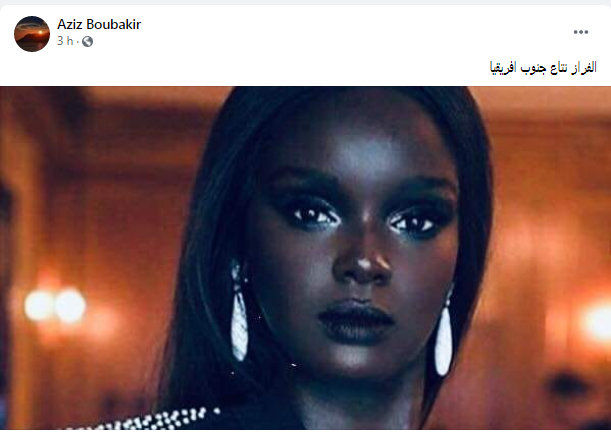 من جانبه الإعلامي عزيز بوباكير علق على الموضوع بنشر صورة لفتاة جميلة سوداء البشرة وعلق: “الفراز نتاع جنوب إفريقيا”.