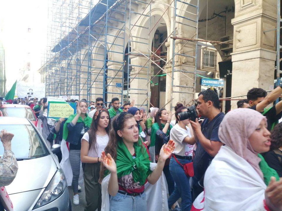 وتجمع طلبة الجامعات من مختلف التخصصات على غير العادة في ساحة الشهداء بالعاصمة، تجنبا للتعزيرات الأمنية التي تعرفها ساحة البريد المركزي ومحيط الجامعة المركزية التي تعود الطلبة الإنطلاق منها كل ثلاثاء في مسيرة.
