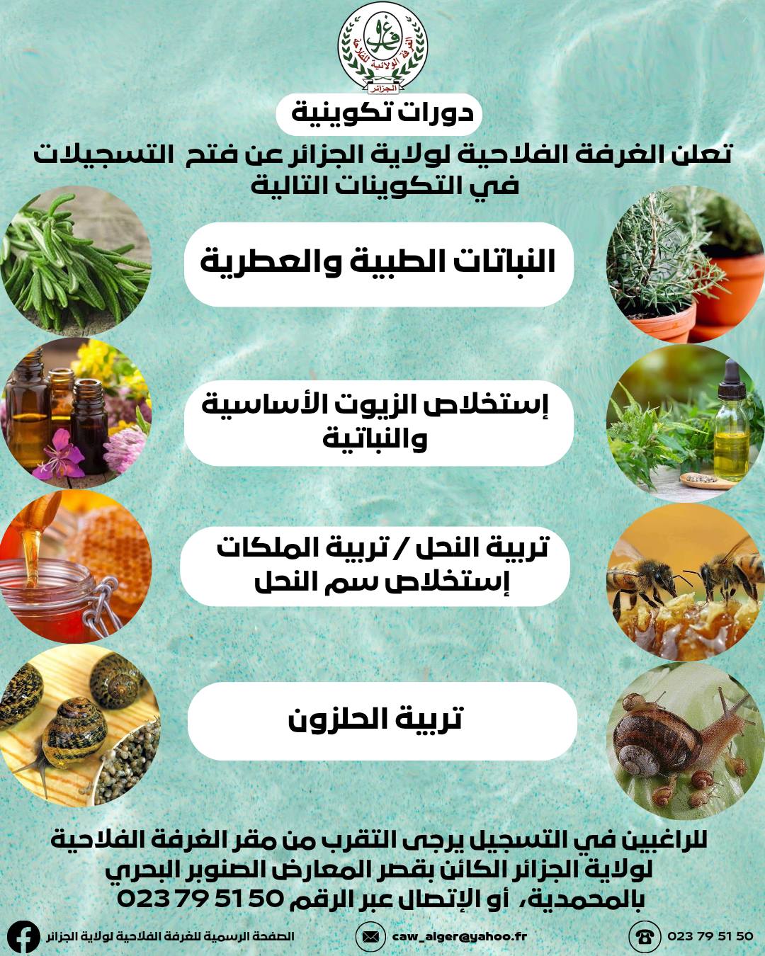 وحسب بيان للغرفة الفلاحية لولاية الجزائر، فإن الدورات التكوينية تشمل البرامج التالية: