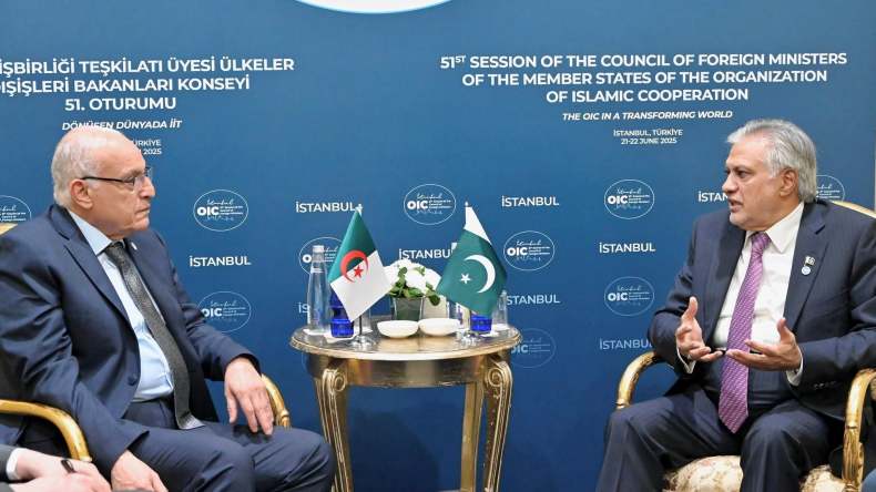 أجرى وزير الدولة، وزير الشؤون الخارجية والجالية الوطنية بالخارج والشؤون الإفريقية، أحمد عطاف، لقاءً ثنائيا مع نائب رئيس الوزراء ووزير الشؤون الخارجية لجمهورية باكستان الإسلامية، محمد إسحاق دار، اليوم الأحد 22 جوان، بإسطنبول، وذلك على هامش مُشاركتهما في أشغال الدورة الـ51 لمجلس وزراء خارجية منظمة التعاون الإسلامي.