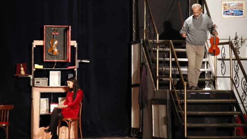 عرض نقل من خلال المخرج الشّاب وكاتب النّص “وليد عبد اللاّهي” جمهور دار الثّقافة ببجاية، عبر محطّات عديدة، رفقة الممثّلين الّذين أبدعوا في تقديم العرض، وقفوا خلالها على الكثير من القضايا في المجتمع بطريقة جميلة وجذّابة، على غرار الخيانة وفارق السّن في الزّواج و اختلاف الاختيار في الحياة وكذا الأحلام والطّموحات، بين أن يريد أن يخلد اسمه كفنّان يرتبط اسمه بأعماله بعد رحيله، و الّذي لعب دوره “فريد غالم” في شخصية “جعفر” صانع  آلة الكمان، وبين ” عفاف” التي لعبت الدّور الممثلة “أمال بن زموري” والّتي تحلم بالأمومة و الحب، كبنت حالمة تختلف نظرتها للحياة مع نظرة زوجها يظهر من خلالها الفارق في الأحلام، بعد فارق السّن. وهذا ما يحدث التّصادم في الحياة اليومية الّذي ينتهي في الأخير بالخيانة، كما شاركهما في تقديم العرض “عبد العزيز قاصد” في دور ” سعيد”، شاب يعمل لدا جعفر ويحلم بالهجرة إلى إيطاليا، تربّى و عاش مع جعفر. إذ يريد هذا الأخير أن يترك له رسالة الفن وصناعة الكمان بعد رحيله، لكنّه اختار طريق نكران الإحسان، ويظهر على حقيقته حتّى في الهندام و الجسد، كمشهد يصوّر الزّيف الذي يعيشه الكثير من النّاس في هذه الحياة.