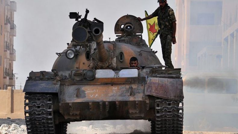 مقاتلون من وحدات حماية الشعب الكردي على دبابة في الحسكة - 2 أوت 2015