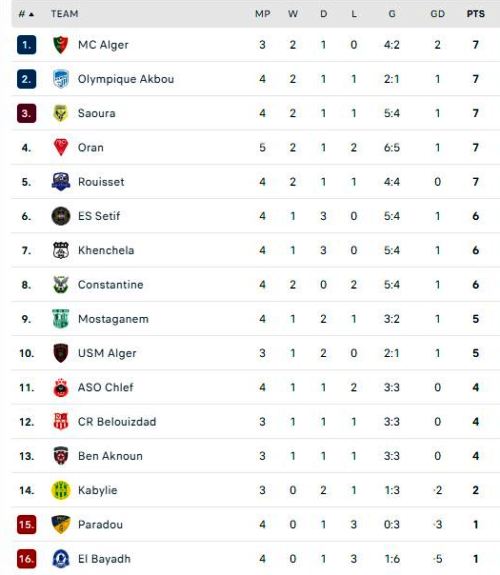 وانفردت مولودية الجزائر بِصدارة الترتيب بعد هذا الانتصار (لائحة الترتيب المدرجة أدناه).