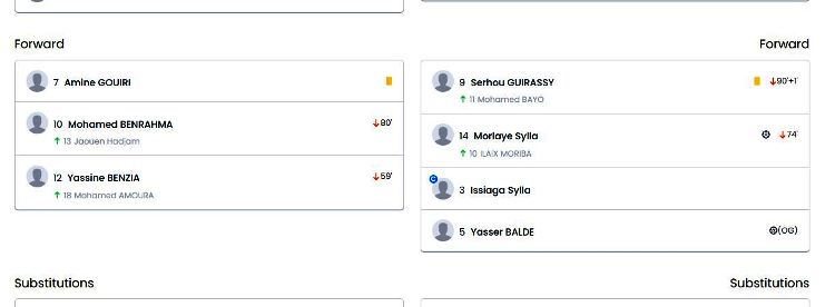 وسجّل الاتحاد الدولي لكرة القدم هذا الهدف بِاسم اللاعب الغيني بالدي (رقم “5”)، ضدّ مرماه (المنشور المُدرج أدناه).