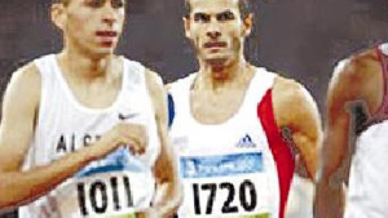العداء الجزائري بوكنسة على يمين الصورة